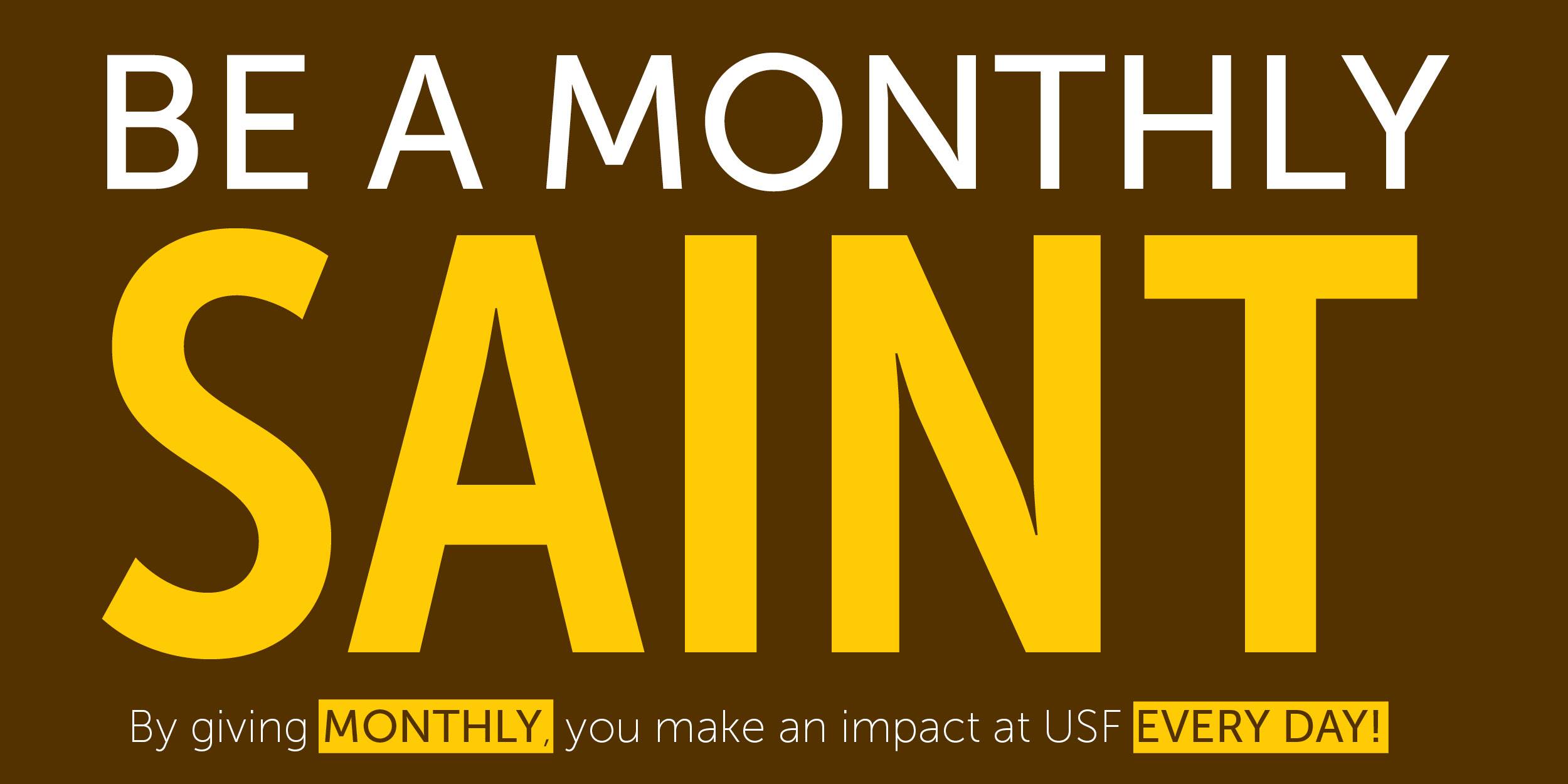 Sustainable—Monthly giving helps save paper, time, and space! Setting up a monthly gift helps reduce postage, emails, and or calls so our attention can be placed on making USF the best it can be for our students!